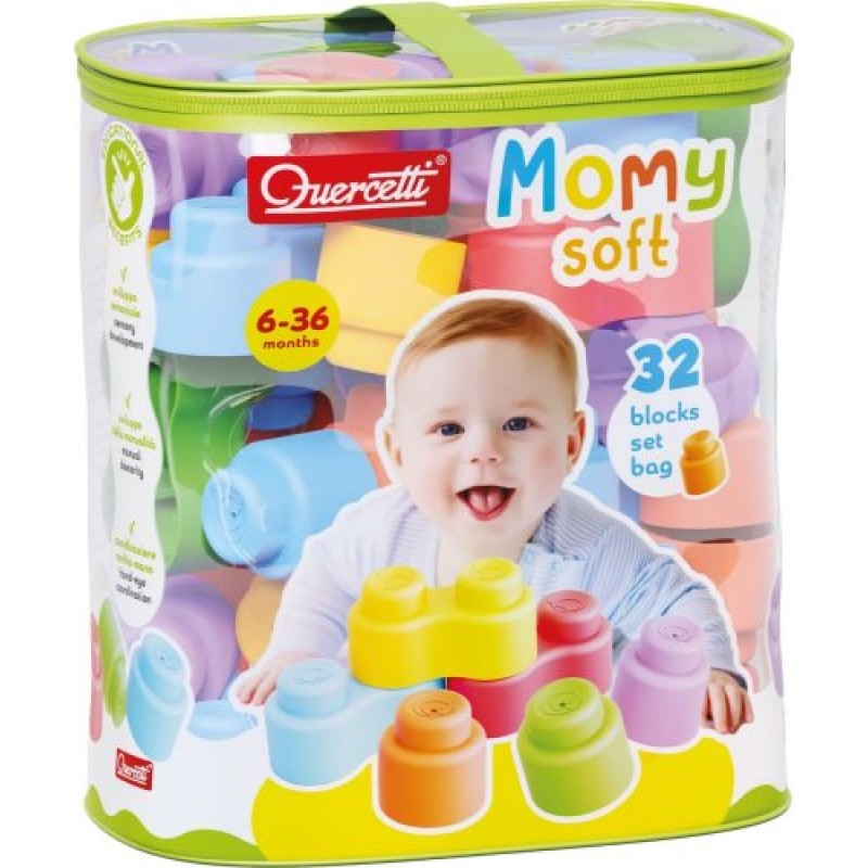 Σετ από 32 μαλακά τουβλάκια κατασκευασμένα από τη Quercetti, σχεδιασμένα ειδικά για παιδιά ηλικίας 6 μηνών και άνω. Τα τουβλάκια έχουν ζωντανά χρώματα, στρογγυλεμένες άκρες, και εύκολο τρόπο σύνδεσης/συσχετισμού μεταξύ τους, ώστε να ενθαρρύνουν τη δημιουργικότητα του παιδιού μέσω της κατασκευής.
