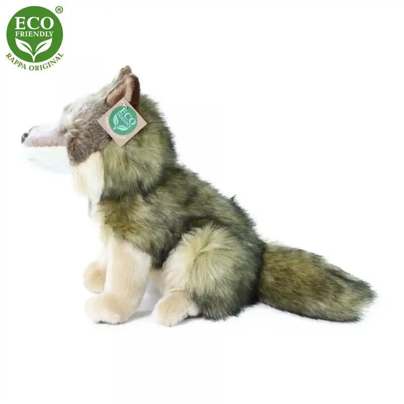 Όμορφο βελούδινο Κογιότ μεγέθους 24 cm. κατασκευασμένο από υψηλής ποιότητας βελούδο. Η βελούδινη γέμιση από ίνες είναι κατασκευασμένη από ανακυκλωμένα μπουκάλια PET. Αυτό το υλικό είναι απολύτως ασφαλές, και πλήρως πιστοποιημένο για την ασφάλεια των μωρών. Φιλικό προς το περιβάλλον.
