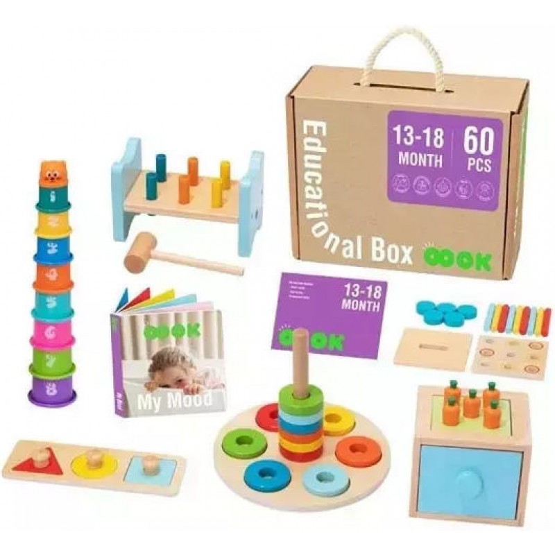 Το ξύλινο σετ εκμάθησης montessori της Tooky Toy, έχει σχεδιαστεί για παιδιά από 13 έως 18 μηνών. Περιέχει 6 αισθητηριακά και διδακτικά παιχνίδια Montessori που υποστηρίζουν την υγιή ψυχοκινητική ανάπτυξη του παιδιού και διεγείρουν τις αισθήσεις, τη λογική σκέψη, τον συντονισμό χεριού-ματιού και τις λεπτές κινητικές δεξιότητες. Περιλαμβάνεται επίσης ένας οδηγός βήμα προς βήμα για τους γονείς, ώστε να γνωρίζετε πότε να παρουσιάσετε το παιχνίδι στο παιδί σας και πώς να παίξετε με αυτό. Ενθαρρύνει την ανάπτυξη με τρόπο που είναι τόσο εκπαιδευτικός όσο και ευχάριστος. Αναπτυξη Δεξιοτήτων: αισθητηριακές, κινητικές δεξιότητες, κοινωνικοσυναισθηματική, γνωστική ανάπτυξη και εξάσκηση. Είναι σχολαστικά κατασκευασμένο και βαμμένο με μη τοξικά, ασφαλή για παιδιά χρώματα, εξασφαλίζοντας μια ξέγνοιαστη εμπειρία παιχνιδιού τόσο για τα παιδιά όσο και για τους γονείς.Επιπλέον, είναι κατασκευασμένο από προϊόντα ξύλου με πιστοποίηση FSC, γεγονός που αντικατοπτρίζει τη δέσμευση για βιωσιμότητα και υπεύθυνη προμήθεια.