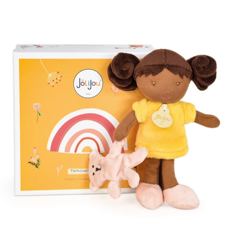 Η δεσποινίς Vanille είναι ντυμένη με αυτό το όμορφο κίτρινο φόρεμα και μπορείτε να διασκεδάσετε με τα καστανά μαλλιά της! Πάει παντού με το αρκουδάκι της που δεν το αποχωρίζεται ποτέ! Παρουσιάζεται σε ένα όμορφο κουτί δώρου. Μια δημιουργία της Doudou που μπορεί να χαριστεί από τη γέννηση.Ύψος 21εκ. Συνιστάται κανονικό πλύσιμο στους 30°C