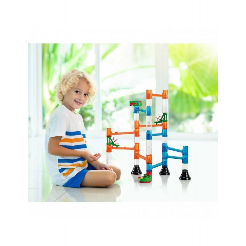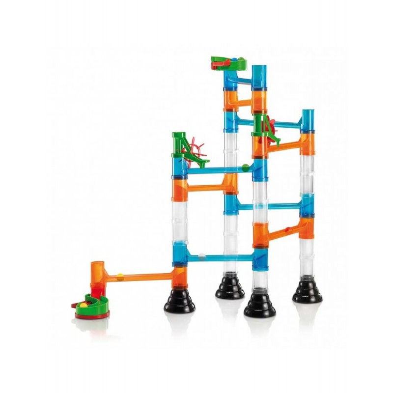 Φτιάξε με όποιον τρόπο θέλεις μια τρισδιάστατη πίστα για μπίλιες, με σωλήνες, διπλό σπιράλ, τσουλήθρες και χωνιά. Βάλε την μια μπίλια μετά την άλλη στην κορυφή και παρακολούθησε την κίνησή τους καθώς κατευθύνονται προς τα κάτω διασχίζοντας όλο το σταθερό οικοδόμημα. Το μόνο που χρειάζεται είναι δημιουργικότητα και λογική. Περιέχει 45τεμαχια.