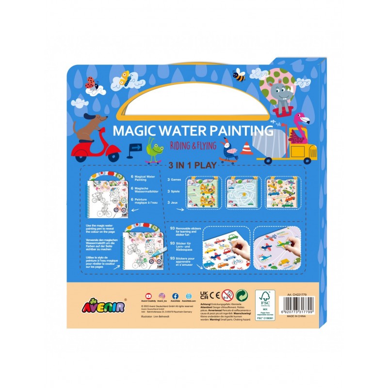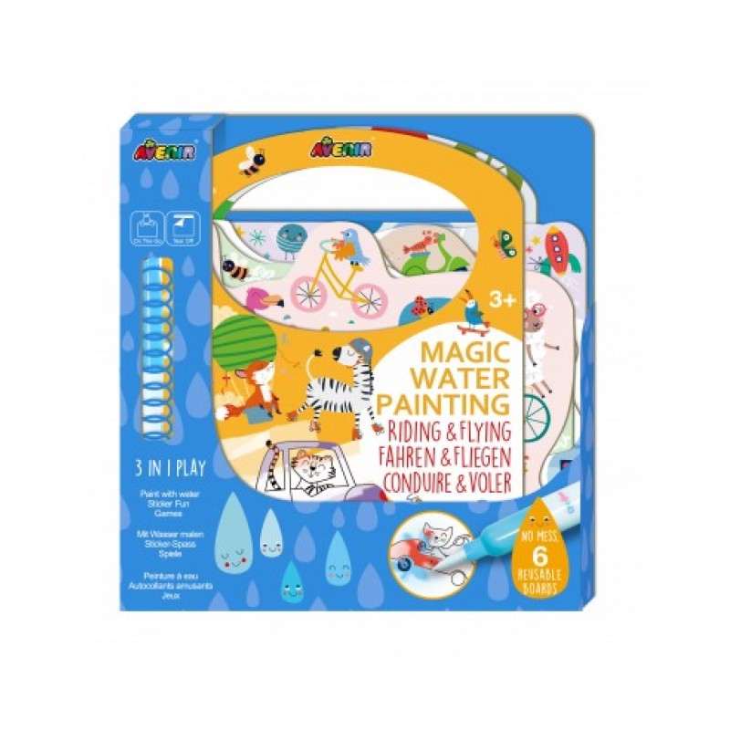 Η δραστηριότητα Μαγικής Ζωγραφικής με Νερό Riding & Flying της Avenir είναι ένας εξαιρετικός τρόπος για να απολαύσετε τη δημιουργικότητα χωρίς ακαταστασία! Το βιβλίο που μεταφέρεται περιλαμβάνει πολλές δραστηριότητες όπως λαβύρινθους, εντοπίστε τη διαφορά και ψάξτε και κρυφτείτε. Βρέξτε το πινέλο και γλιστρήστε το πάνω στις σελίδες για να αποκαλύψετε το χρώμα. Αυτό το βιβλίο παιχνιδιού 3 σε 1 είναι μια εξαιρετική επιλογή για παιδιά εν κινήσει! Πάρτε το μαζί σας σε ένα ταξίδι για να διασκεδάσουν τα μικρά σας. Περιλαμβάνει πλαστικό στυλό για γέμισμα με νερό. Διαθέτει έξι επαναχρησιμοποιούμενες κάρτες. Εύκολος σχεδιασμός για να το παίρνετε παντού. Υπέροχες εικόνες και στυλ. Παίξτε με αυτοκόλλητα που μπορούν να επανατοποθετηθούν και μάθετε το παιχνίδι λαβυρίνθου Seek and Find. Τέλειο για διασκέδαση χωρίς ακαταστασία!