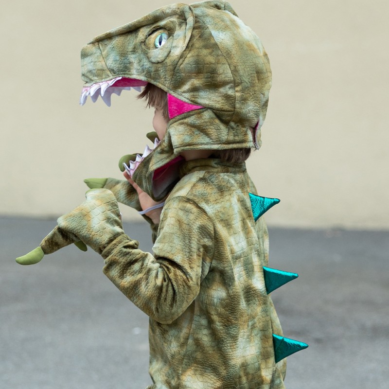 Αυτή η στολή με εντυπωσιακό σχέδιο πράσινου ράπτορα, είναι ιδανική για κάθε μικρό εξερευνητή. Το φερμουάρ μπροστά κάνει το ντύσιμο πανεύκολο, για να είστε έτοιμοι για δράση σε χρόνο μηδέν. Το Highlight της στολής είναι η μακριά ουρά που πέφτει από την πλάτη, διακοσμημένη με μεταλλικές πράσινες αιχμές για ακόμα πιο δυναμικό στιλ. Και φυσικά το λούτρινο κεφάλι με μάτια, δόντια και χαρακτήρα που ζωντανεύει το δεινοσαυρικό look. Για το απόλυτο φινίρισμα, διαθέτει νύχια ράπτορα που φοριούνται πάνω από τους καρπούς με ελαστικές ταινίες, ώστε να κρατάτε τον έλεγχο είτε τρέχετε στη ζούγκλα είτε ετοιμάζεστε να… κατακτήσετε το σπίτι!
