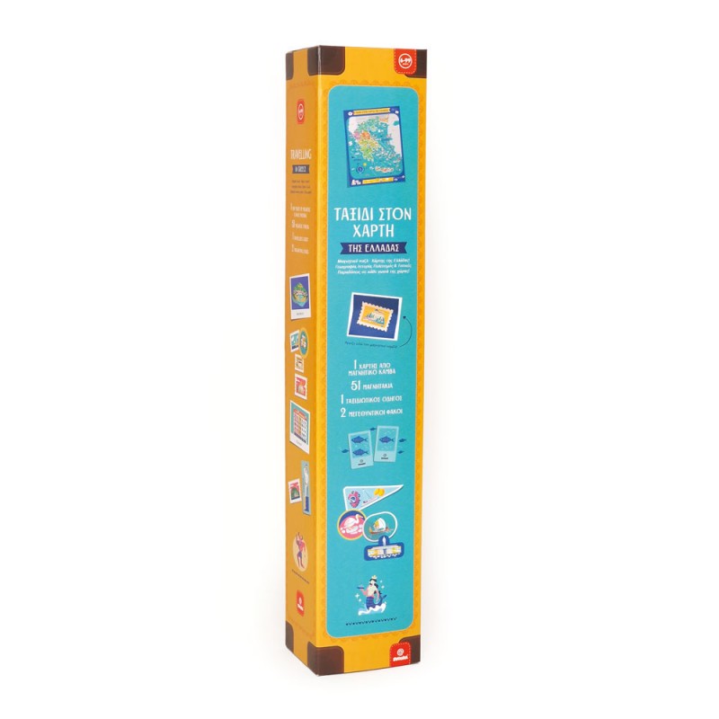 «Ταξίδι στον χάρτη της Ελλάδας» - ένας συναρπαστικός Χάρτης – μαγνητικό Παζλ από την εταιρία Svoora! Iδανικός συνδυασμός διασκέδασης και μάθησης για εσάς και την οικογένειά σας! Με μια εντυπωσιακή εικονογράφηση γεμάτη γεωμορφολογικά στοιχεία – βουνά, ποτάμια, λίμνες – και μαγνητάκια που αναδεικνύουν τοπικά προϊόντα, αξιοθέατα και έθιμα, σας προσκαλεί να γνωρίσετε τη μοναδική γεωγραφία και πολιτιστική κληρονομιά της χώρας μας. Εξερευνήστε κάθε νομό, απολαμβάνοντας τις φυσικές ομορφιές και τα πολιτιστικά χαρακτηριστικά του. Διαθέτει πυξίδα, υπόμνημα και γραφική κλίμακα για εύκολο προσανατολισμό, ώστε να κατανοείτε αποστάσεις και τοποθεσίες. Κάντε την εμπειρία σας ακόμα πιο συναρπαστική, ανακαλύπτοντας 15 κρυμμένες γάτες στις εικόνες του! Με τους δύο μεγεθυντικούς φακούς που περιλαμβάνονται, μπορείτε να εστιάσετε σε μικρές λεπτομέρειες, να δείτε αξιοθέατα από κοντά και να γίνετε αληθινοί εξερευνητές! Ζήστε τη μαγεία της Ελλάδας μέσα από αυτό το άκρως εκπαιδευτικό και διασκεδαστικό ταξίδι – ένα παιχνίδι γεμάτο γνώσεις, περιπέτεια και διασκέδαση για μικρούς και μεγάλους!