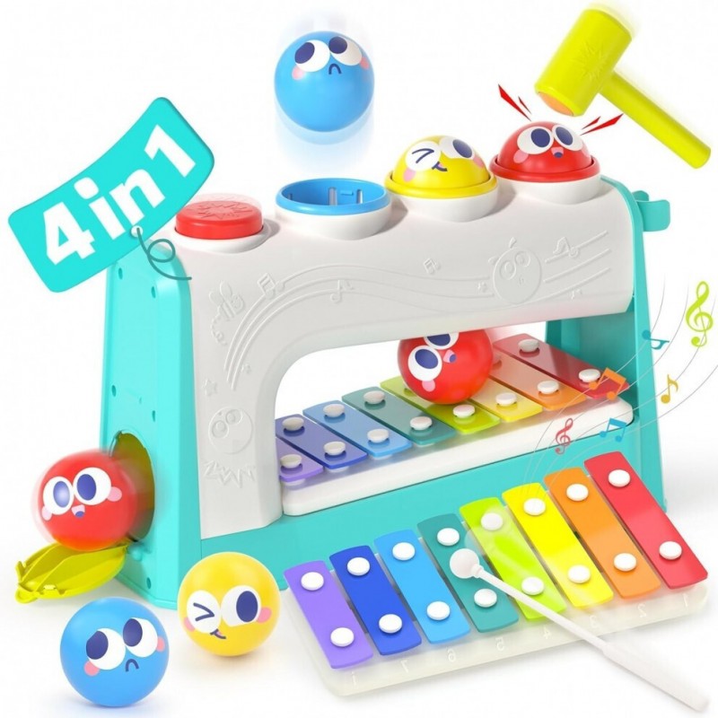 Το σετ μουσικών οργάνων είναι ένα διασκεδαστικό εξοπλισμένο με μεταλλόφωνο για να διεγείρει την αίσθηση της ακοής και της όρασης από την πρώιμη παιδική ηλικία. Ανακαλύψτε τις μουσικές νότες συμπληρώνοντας τις 3 χρωματιστές μπάλες με το σφυρί, πέφτοντας στο μεταλλόφωνο για να βγάλουν ήχο.