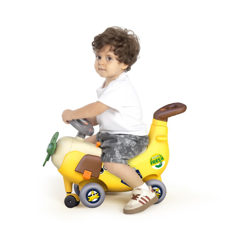 Η περπατήστρα σε σχήμα αεροπλάνου 4 σε 1 έχει σχεδιαστεί για παιδιά ηλικίας 12 έως 36 μηνών και προσφέρει τέσσερις τρόπους παιχνιδιού: όχημα για οδήγηση, περπατήστρα με στήριγμα, καροτσάκι και τσουλήθρα. Επικεντρώνεται στη διαδραστική εμπειρία με πίνακα ελέγχου που διαθέτει κινητό τιμόνι, φωτιζόμενο έλικα και ήχους, ιδανικά για φανταστικό παιχνίδι. Το παιχνίδι αυτό βοηθά στην ανάπτυξη των λεπτών κινητικών δεξιοτήτων.