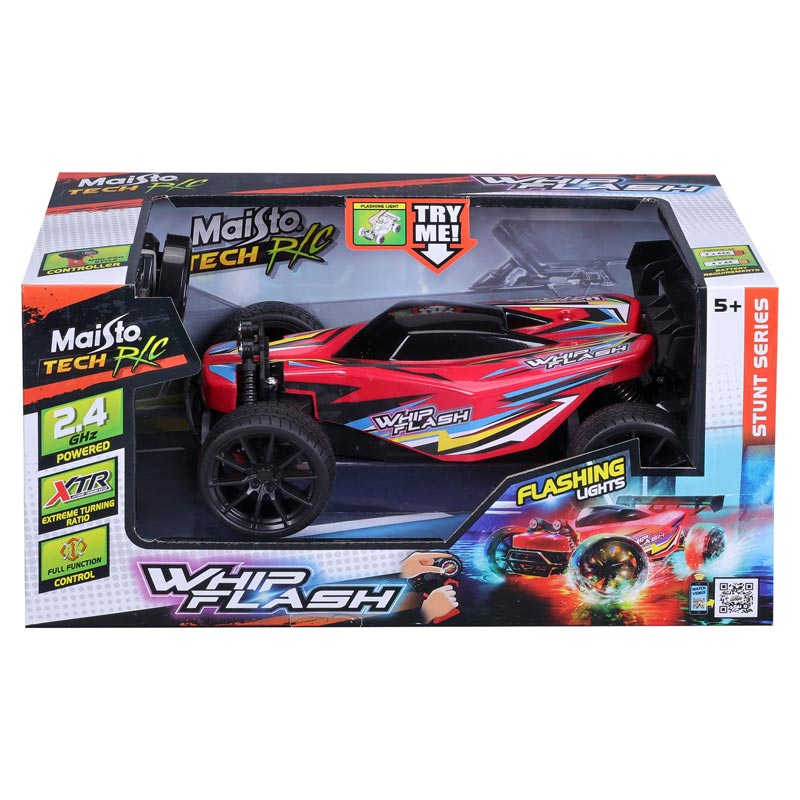 Όχημα RC υψηλής ταχύτητας με φωτισμένο σώμα που κάνει πραγματικά παράσταση! Επιταχύνετε στις κλειστές στροφές χρησιμοποιώντας την τεχνολογία XTR και εκτίναξε τις ευθείες με ένα σύστημα μετάδοσης κίνησης 2,4 GHz υψηλής απόδοσης ενώ προβάλλετε ένα εκθαμβωτικό λαμπερό θέαμα. Το Whipflash είναι το τέλειο όχημα για show! Τηλεχειριστήριο με 2 μπαταρίες ΑΑΑ( δεν περιλαμβάνονται). Όχημα μήκους 15εκ. με 4 μπαταρίες ΑΑΑ( δεν περιλαμβάνονται).