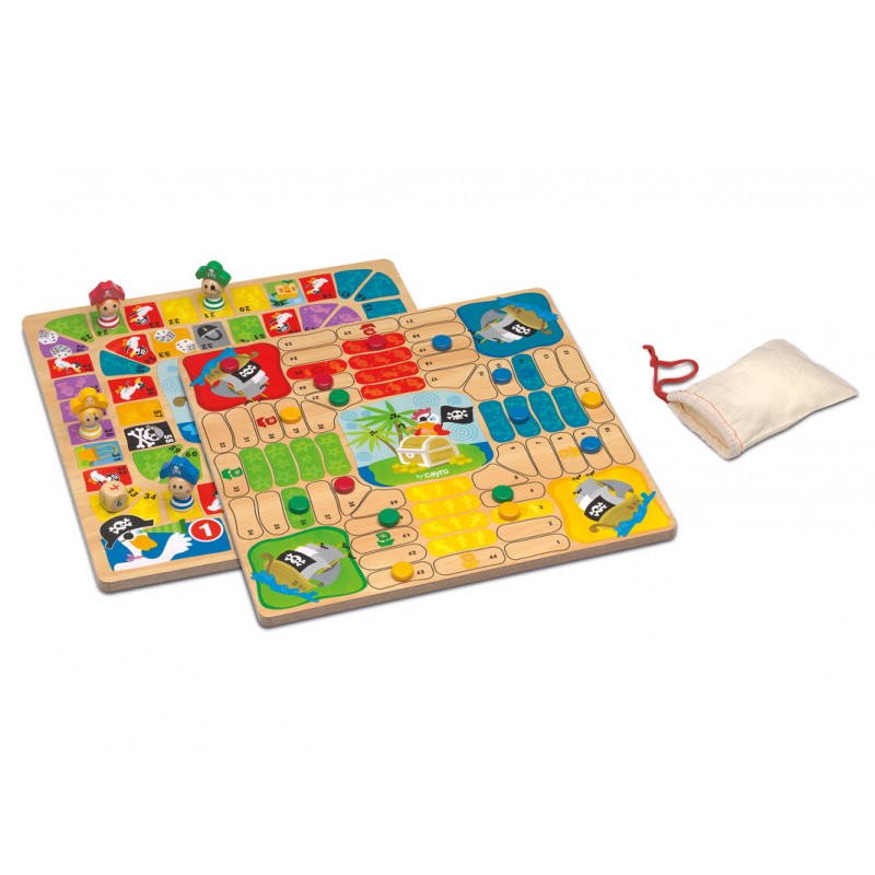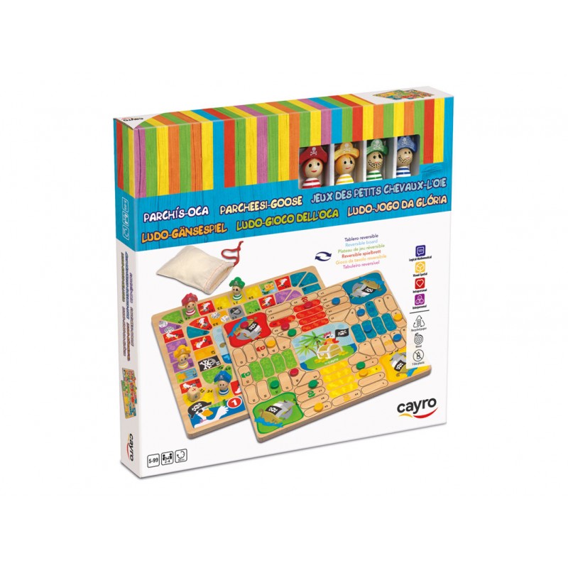 Τα κλασικά παιχνίδια Χήνα και Γκρινιάρης σε ένα όμορφο ξύλινο σετ από την Ισπανική εταιρεία Cayro. Τα πιόνια έχουν αντικατασταθεί από φιγούρες πειρατών και χαρίζουν ατελείωτες ώρες διασκέδασης.