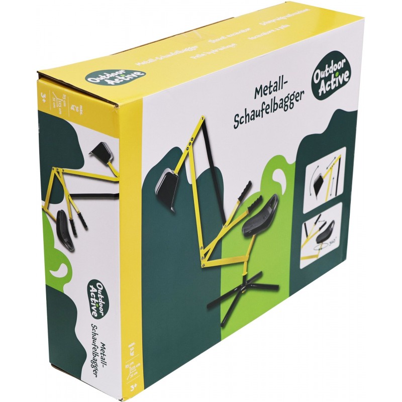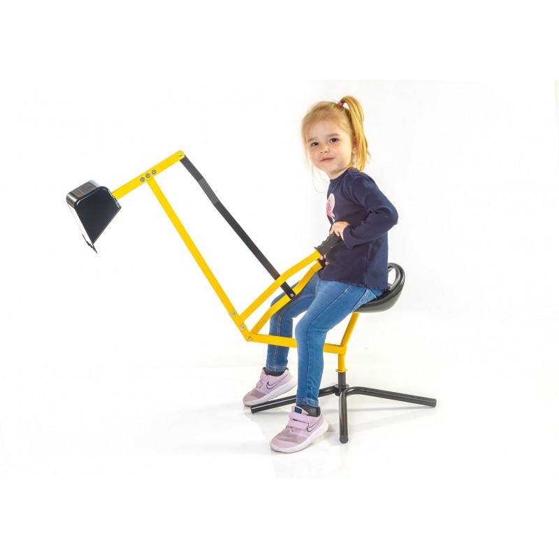 Μεταλλικός εκσκαφέας με χρωματισμούς κίτρινο/μαύρο. Κατασκευασμένο από υψηλής ποιότητας μέταλλο με πλαστικό κάθισμα. Ο εκσκαφέας μπορεί να περιστραφεί κατά 360 μοίρες και έτσι εξασφαλίζει πολλή δράση στην άμμο ή τον κήπο. Μέγιστο βάρος αναβάτη περίπου 50 kg. Διαστάσεις περίπου 115x31x85 cm. Για παιδιά από 3 ετών.