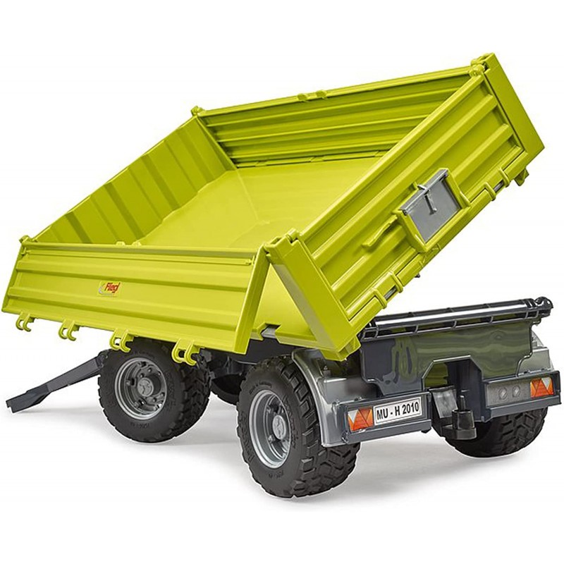 Η ανατρεπόμενη καρότσα 3 κατευθύνσεων Fliegl με προσαρτώμενη πλευρά πτώσης, κατασκευασμένο από την εταιρεία Bruder, κατασκευάστηκε πιστά με το πρωτότυπο σε κλίμακα 1:16. Ο ενεργοποιητής ολίσθησης της ανατροπής βρίσκεται στο μπροστινό μέρος του ανατρεπόμενου. Εάν μετακινήσετε το μοχλό ελέγχου προς τα αριστερά, η πλατφόρμα μπορεί να γέρνει προς τα αριστερά, εάν μετακινήσετε το μοχλό ελέγχου προς τα δεξιά, η πλατφόρμα γέρνει προς τα δεξιά. Μετακινημένη πίσω στη μέση, η πλατφόρμα γέρνει προς τα πίσω. Είναι παιδικό παιχνίδι ο καθορισμός της κατεύθυνσης κλίσης. Φυσικά, ένα ανατρεπόμενο περιλαμβάνει και πλευρικά τοιχώματα που στερεώνονται στο πάνω μέρος και μπορούν να ανοίξουν.