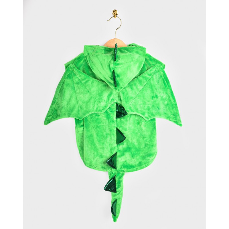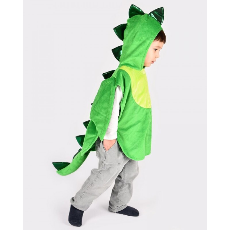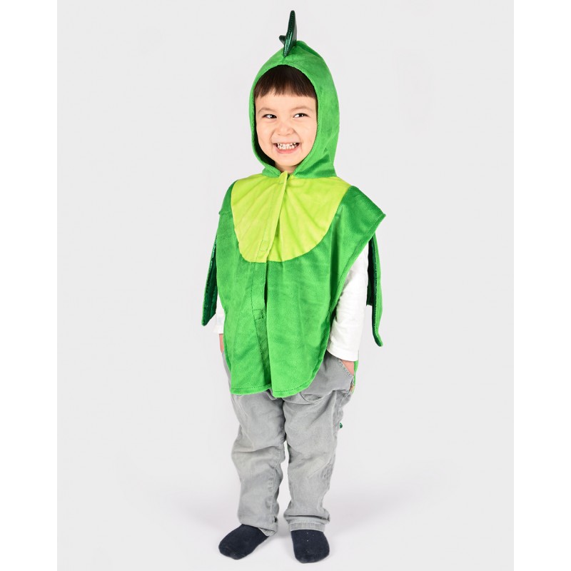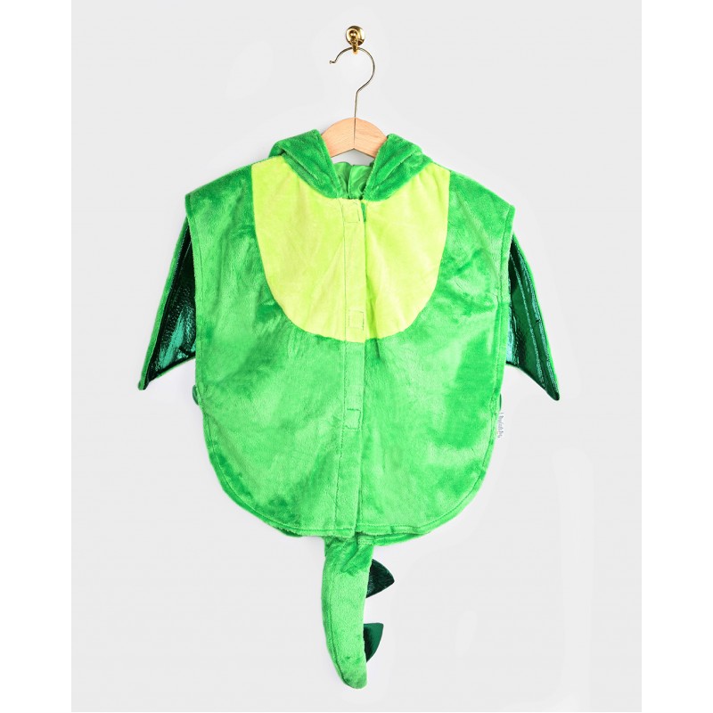 Υπέροχο κουστούμι δράκου για μικρά παιδιά. Η κάπα δράκου, όπως και οι άλλες μίνι κάπες, έχει κλείσιμο με Velcro μπροστά και ελαστικές ταινίες στα πλάγια για εύκολο ντύσιμο. Διευκολύνει επίσης την περιπλάνηση και το παιχνίδι. Το πράσινο κοστούμι έχει ραμμένη κουκούλα με ακίδες που τρέχουν μέχρι την πλάτη και την ουρά. Επιπλέον δροσερά φτερά για να πετάξετε.