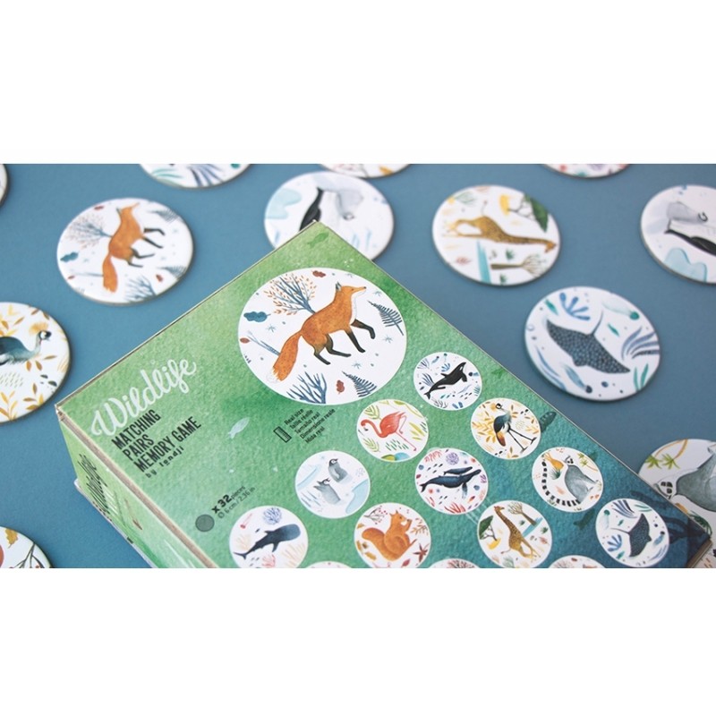 Memo της εταιρείας Londji. Ένα έξυπνο παιχνίδι μνήμης και παρατηρητικότητας. Ενώστε τα ίδια άγρια ζώα και παίξτε με τις εικονογραφημένες κάρτες με πιγκουίνους, φλαμίνγκο, ρινόκερους και διάφορα άλλα ζωάκια. Κατασκευασμένο από υψηλής ποιότητας ανακυκλωμένο χαρτί και χαρτόνι. Περιέχει 32 εικονογραφημένες κάρτες.