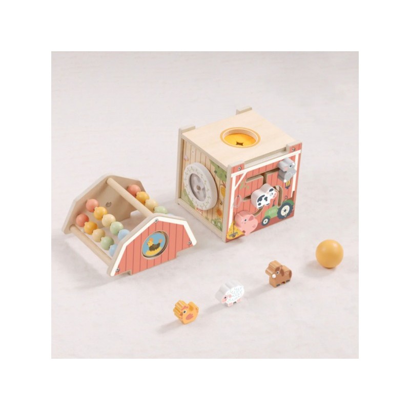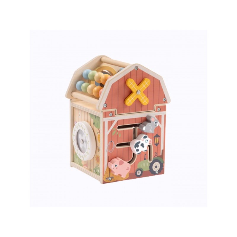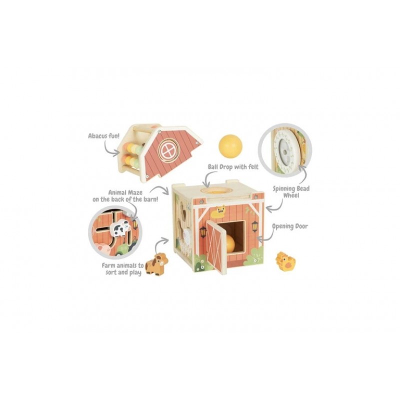Μοιραστείτε τις περιπέτειες του αγροκτήματος με αυτό το συναρπαστικό Ξύλινο Σπιτάκι Αγροκτήματος από την Tooky Toy. Σχεδιασμένο για να διεγείρει την εξερεύνηση και την ανάπτυξη, αυτός ο αχυρώνας πολλαπλών δραστηριοτήτων προσφέρει μια ποικιλία από αισθητηριακές, κινητικές και ευφάνταστες ευκαιρίες παιχνιδιού, καθιστώντας το το τέλειο εκπαιδευτικό παιχνίδι για νήπια. Κατασκευασμένο από ξύλο πιστοποιημένο από FSC με λείες άκρες και μη τοξικά χρώματα, ο στιβαρός σχεδιασμός εξασφαλίζει ασφαλή διασκέδαση. Ο αχυρώνας χωρίζεται σε δύο τμήματα για να επεκτείνει το παιχνίδι και να ενθαρρύνει τη δημιουργική αφήγηση. Περιλαμβάνει χάντρες σε στυλ άβακα στην οροφή, έναν περιστρεφόμενο ανεμοδείκτη, έναν κόκορα που περιστρέφεται, έναν διαλογέα σχημάτων με απαλή είσοδο μπάλας από τσόχα και ένα γοητευτικό καρουζέλ χαντρών που προάγει τις λεπτές κινητικές δεξιότητες και τον οπτικό συντονισμό. Οι πολύχρωμοι χαρακτήρες ζώων αγροκτήματος, όπως αγελάδα, πρόβατο, γουρούνι, κοτόπουλο, κουνέλι και άλογο, υποστηρίζουν την πρώιμη μάθηση και το ευφάνταστο παιχνίδι. Το μικρό μέγεθος το καθιστά κατάλληλο για μικρά παιδιά να εξερευνούν και να αναπτύσσουν σημαντικές δεξιότητες ενώ διασκεδάζουν.