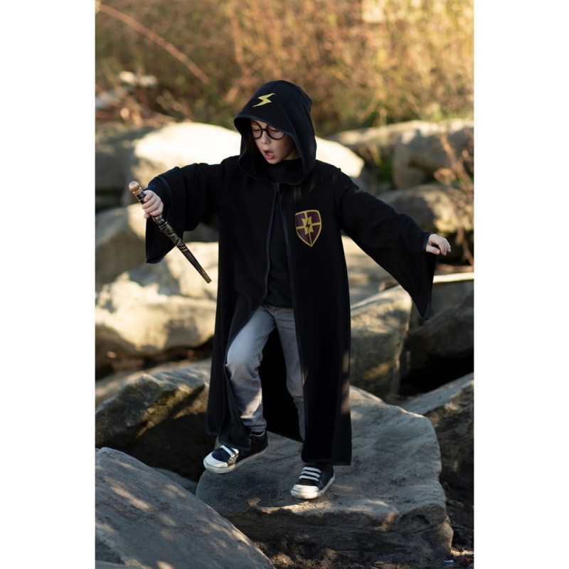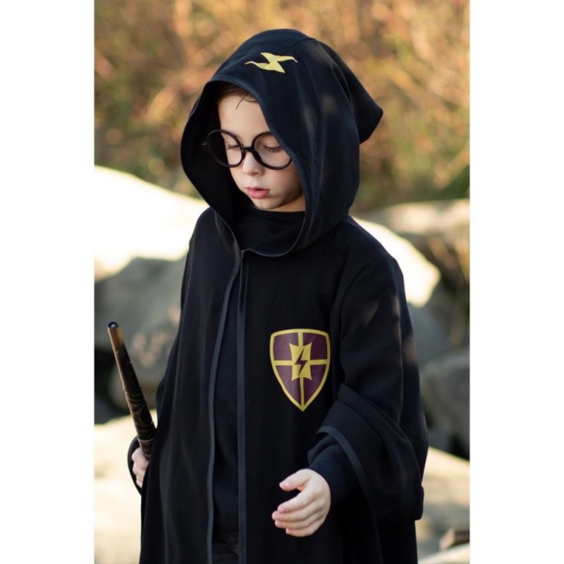Συγχαρητήρια! Έχετε γίνει δεκτός στη σχολή μαγείας! Μην ξεχάσετε να πάρετε μαζί σας την κάπα της Great Pretenders! Ιδιαίτερα απαλή και άνετη στην εφαρμογή, αυτή η μαύρη κάπα με κουκούλα, είναι διακοσμημένη με το σήμα της σχολής των μάγων και έναν κεραυνό στην κουκούλα, ενώ συνοδεύεται από ένα σετ στρογγυλών γυαλιών. Κατάλληλη για ηλικίες 6-8 ετών. Μεγεθολόγιο: Ύψος: 116-128εκ. Μέση: 58-59εκ. Γοφοί: 68-70εκ.