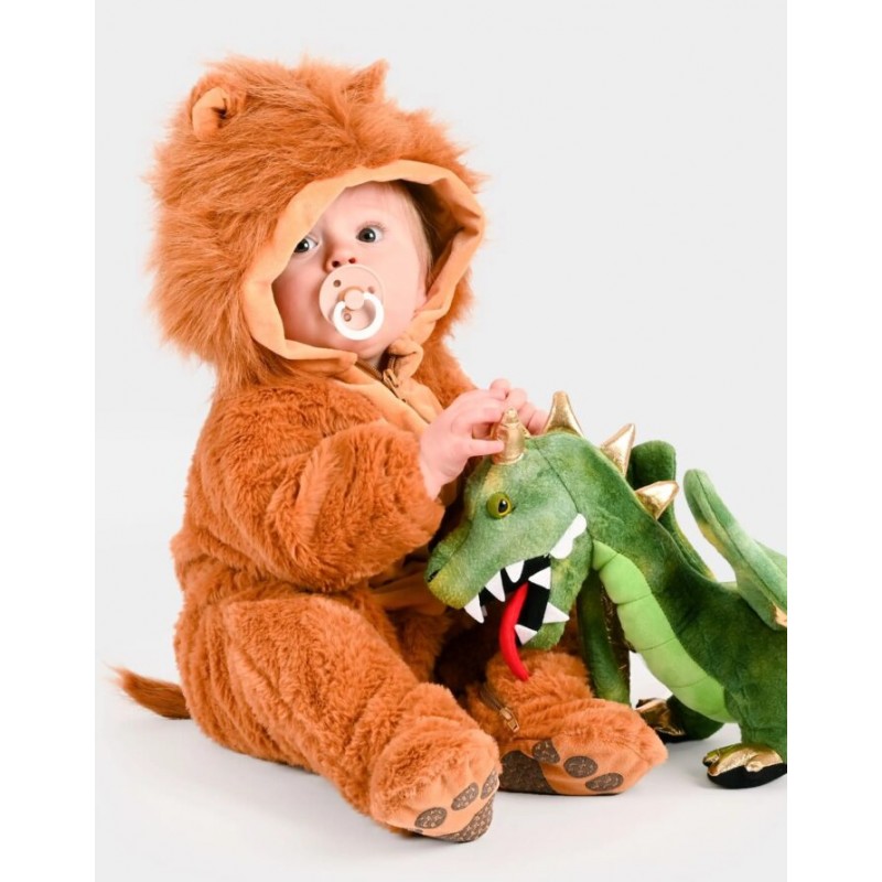 Bρεφική στολή λιονταράκι, xαριτωμένη, ζεστή και εξαιρετικά απαλή που μεταμορφώνει το μωρό σε έναν μικρό βασιλιά της ζούγκλας! Η ολόσωμη κατασκευή από plush ύφασμα προσφέρει άνεση και θαλπωρή, ιδανική για τις πρώτες μεταμφιέσεις και το καθημερινό παιχνίδι. Η κουκούλα διαθέτει πλούσια, αφράτη χαίτη λιονταριού και μικρά αυτάκια, δημιουργώντας ένα εντυπωσιακό αλλά ταυτόχρονα γλυκό αποτέλεσμα. Η ανοιχτόχρωμη κοιλίτσα στο μπροστινό μέρος και η ουρίτσα στο πίσω μέρος ολοκληρώνουν το σχέδιο. Το φερμουάρ μπροστά διευκολύνει το ντύσιμο και την αλλαγή πάνας.